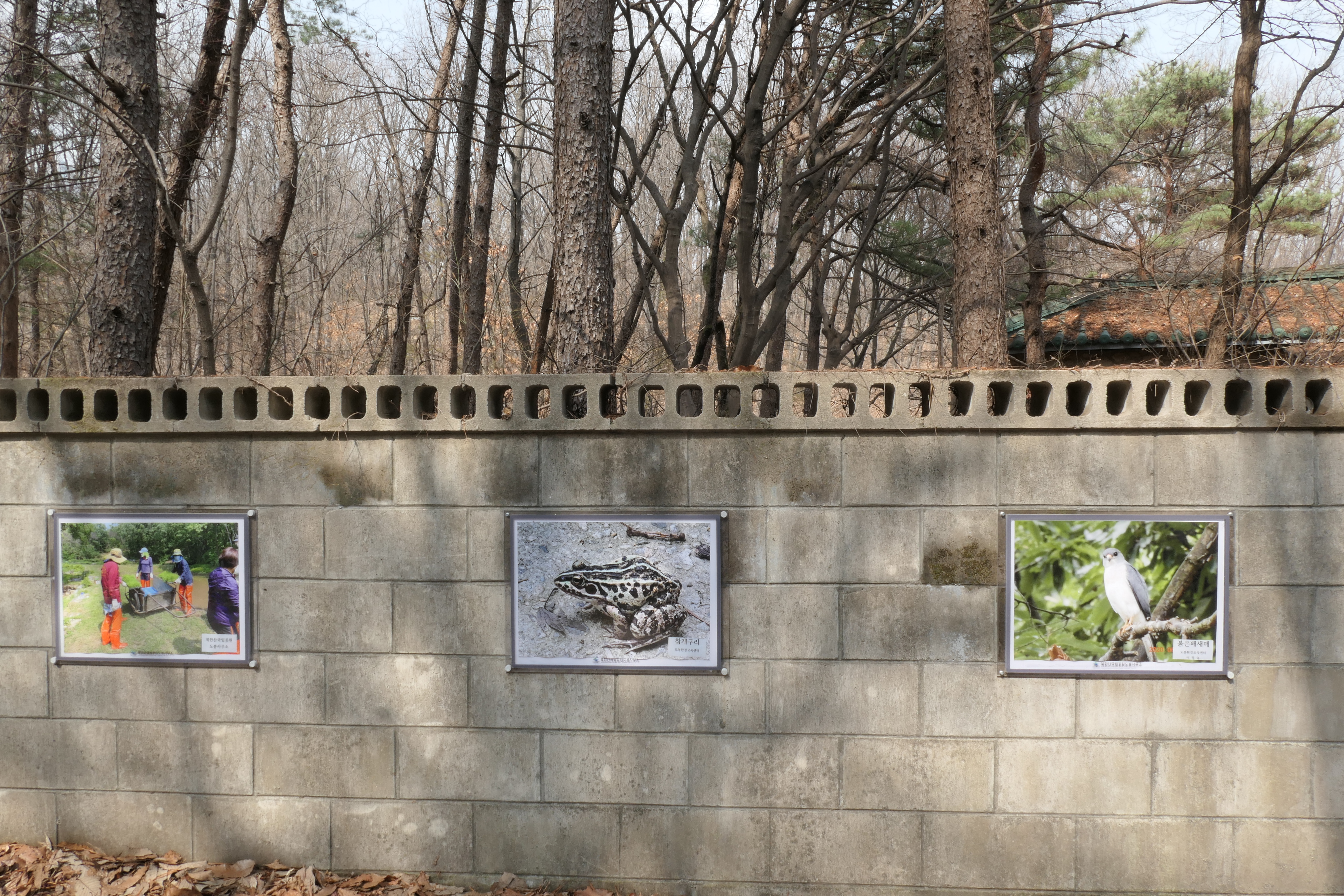 비둘기 소리 같기도 한 꿕꿕~~거리는 소리가 물속에서 들려와 살펴보니 개구리 한마리 물 속으로 달아나고