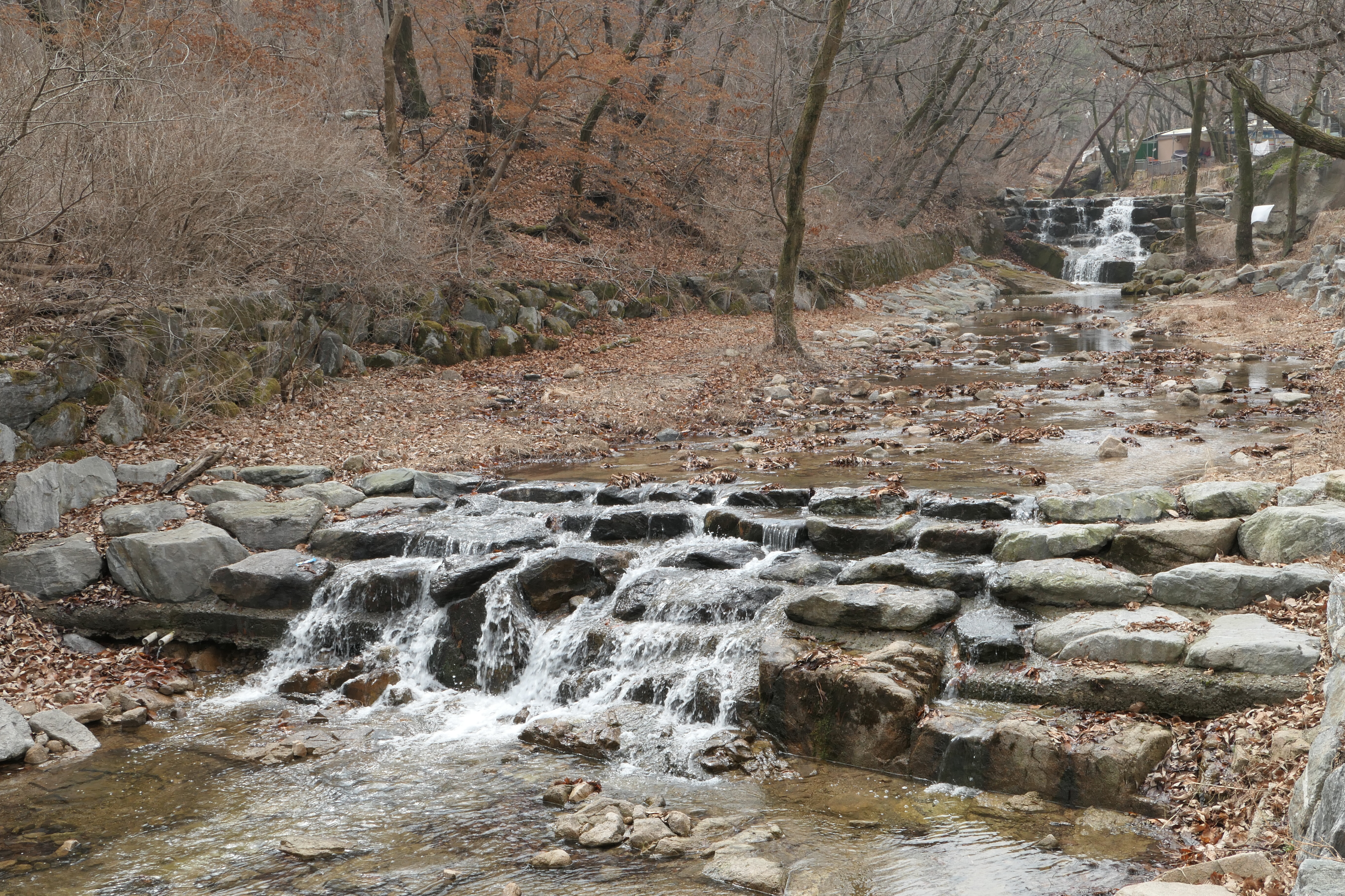 엊그제 온 비로 제법 수량이 불었다. 음지에 있는 얼음들도 이젠 가장자리가 둥글둥글 부드러워지고