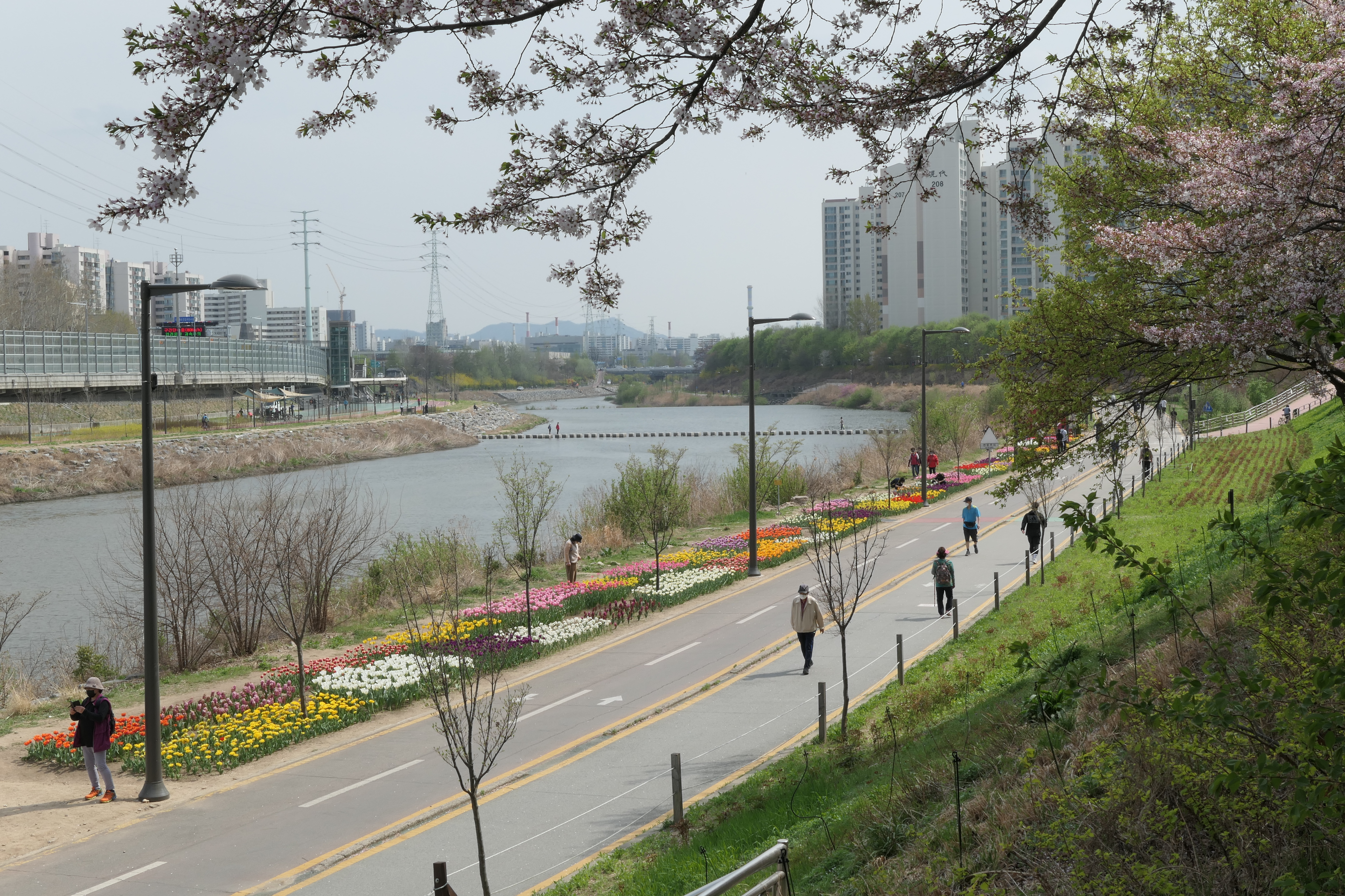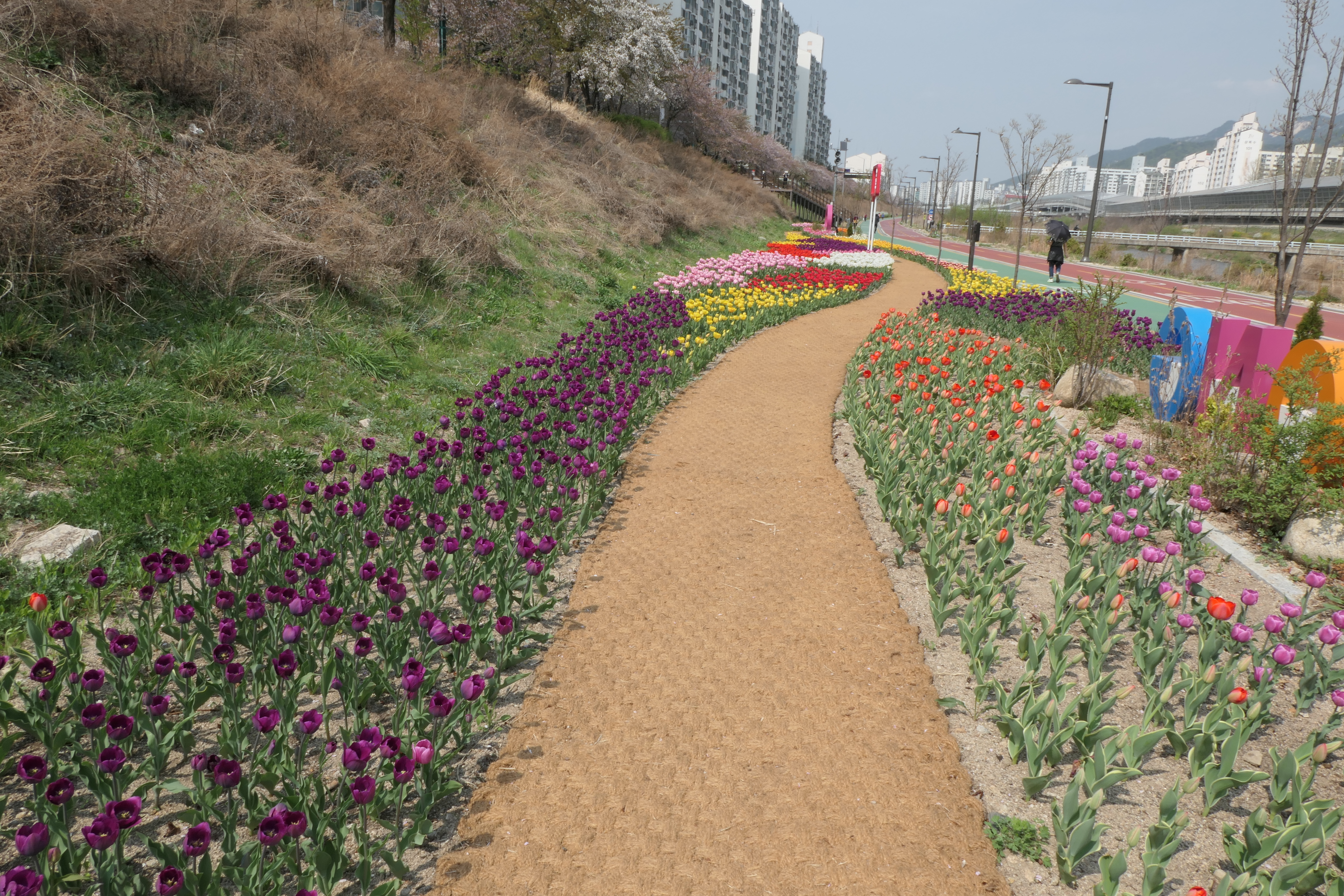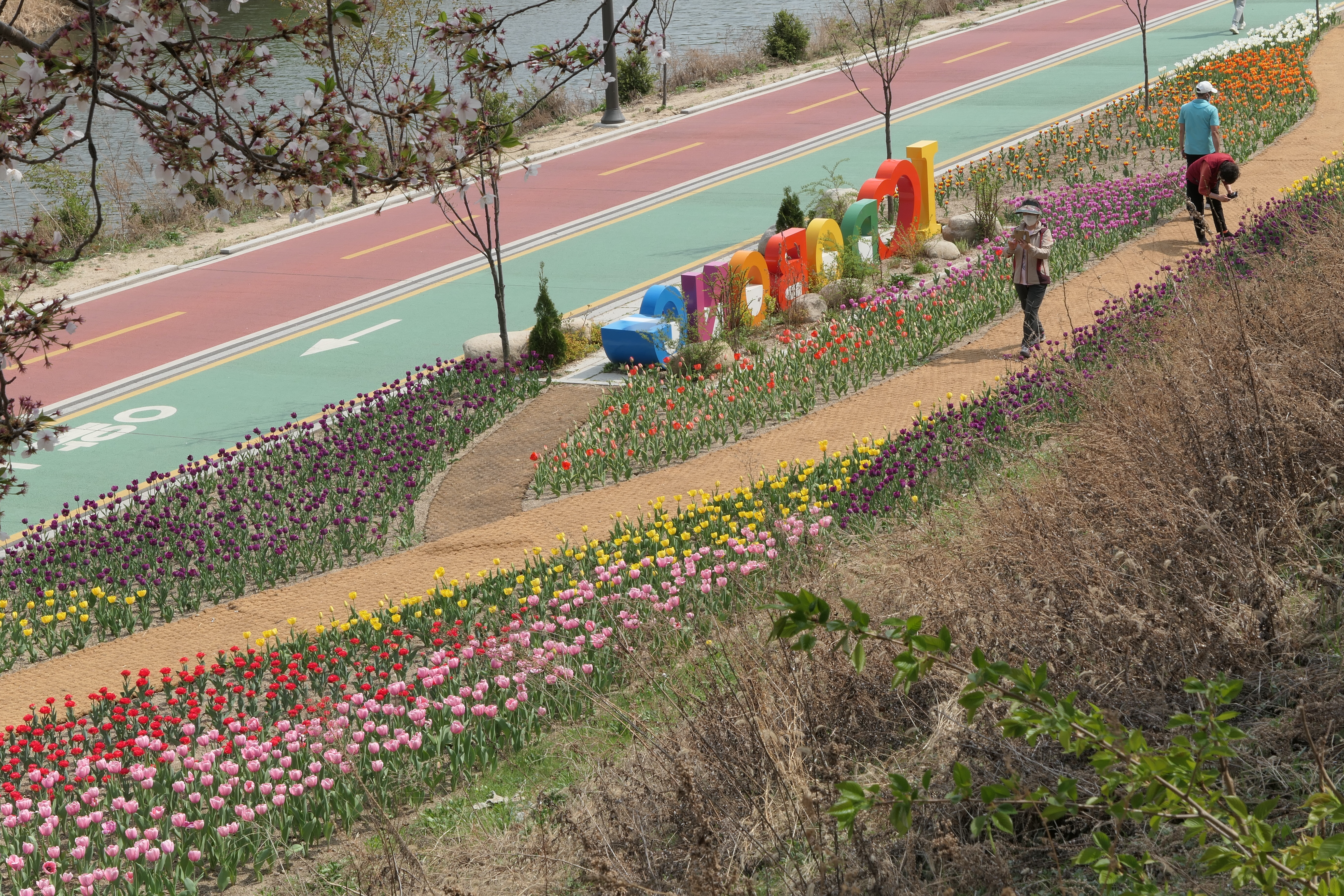 자전거 도로로 나와 튤립을 보러 갔다.