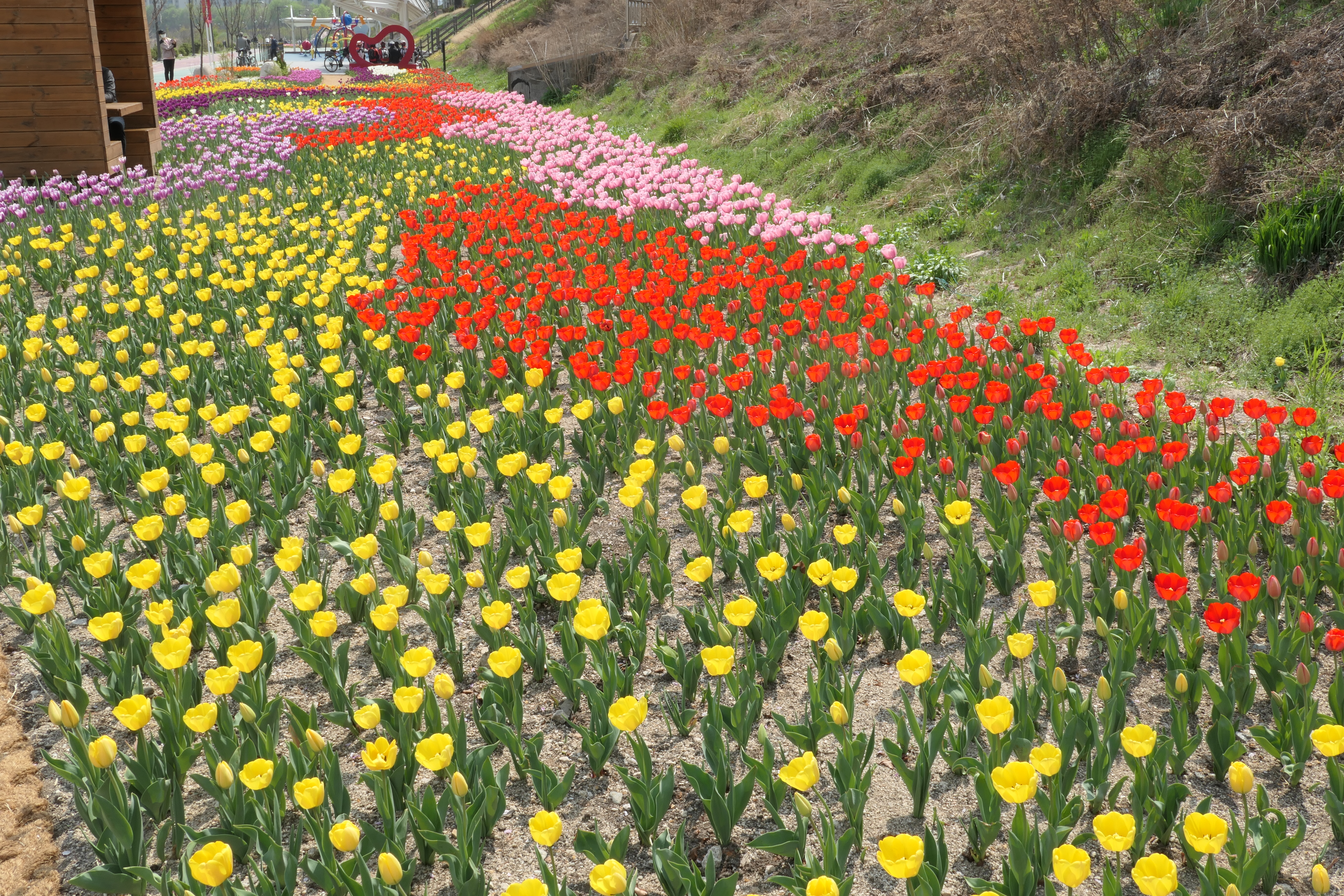 다양한 튤립을 심어 눈이 호강을 한다. 같은 색끼리 모아놓은 곳이 많았지만