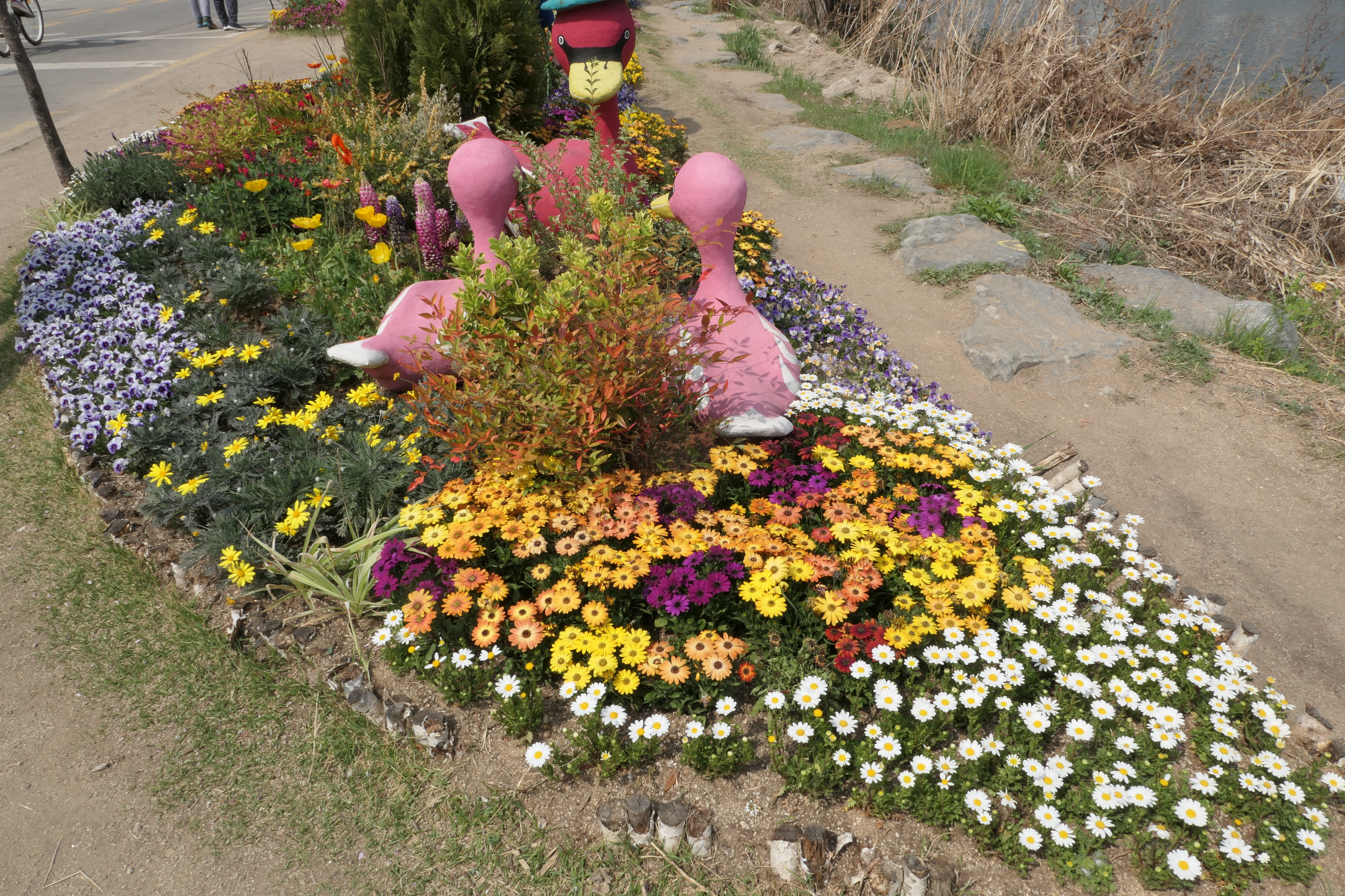 같은 색끼리 심어놓은 사이에 이렇게 섞어서 심어놓은 곳도 좋아보였다.