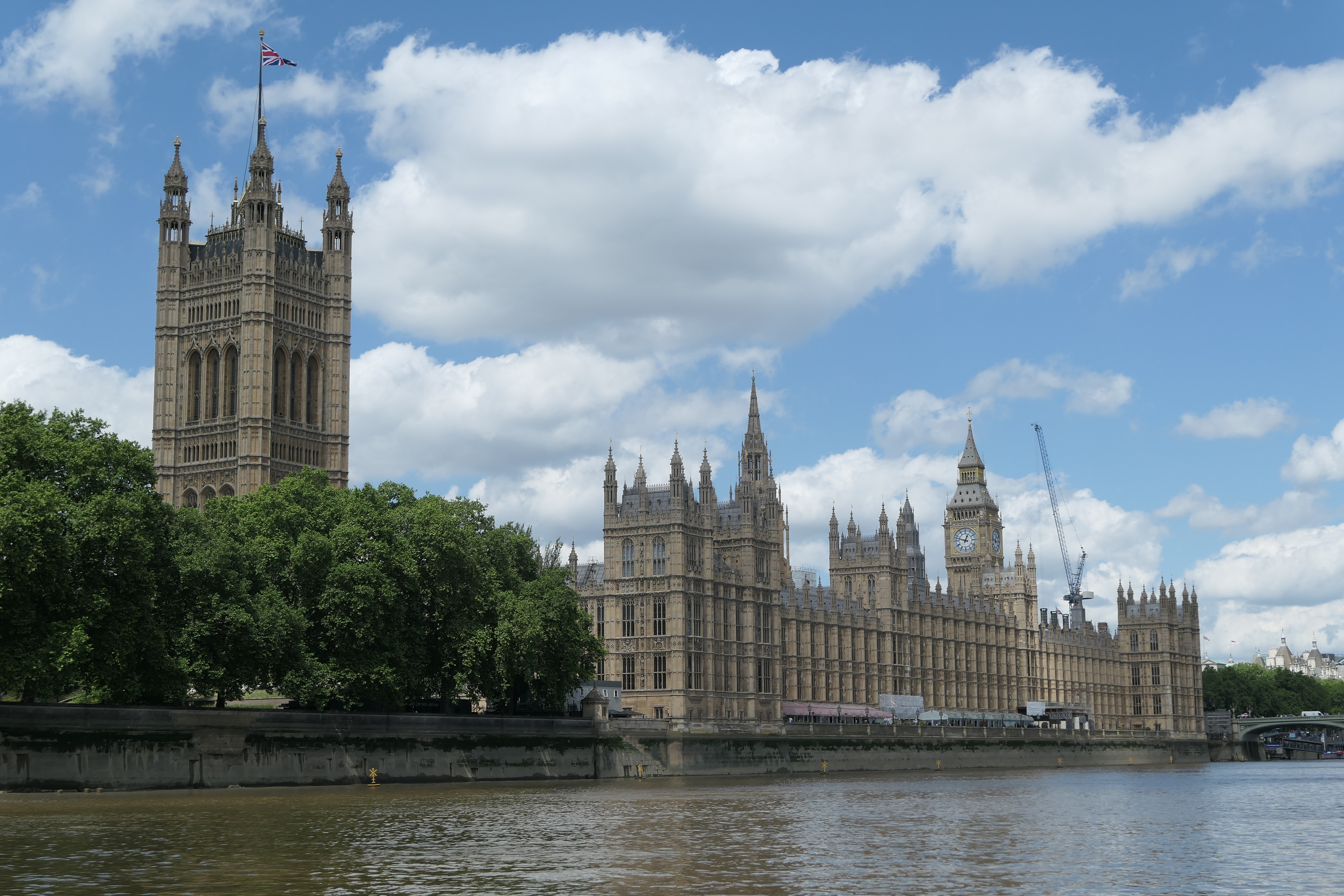 오늘도 날이 좋아 의사당 건물과 런던 아이, 빅벤이 하늘을 배경으로 멋지게 서 있다.