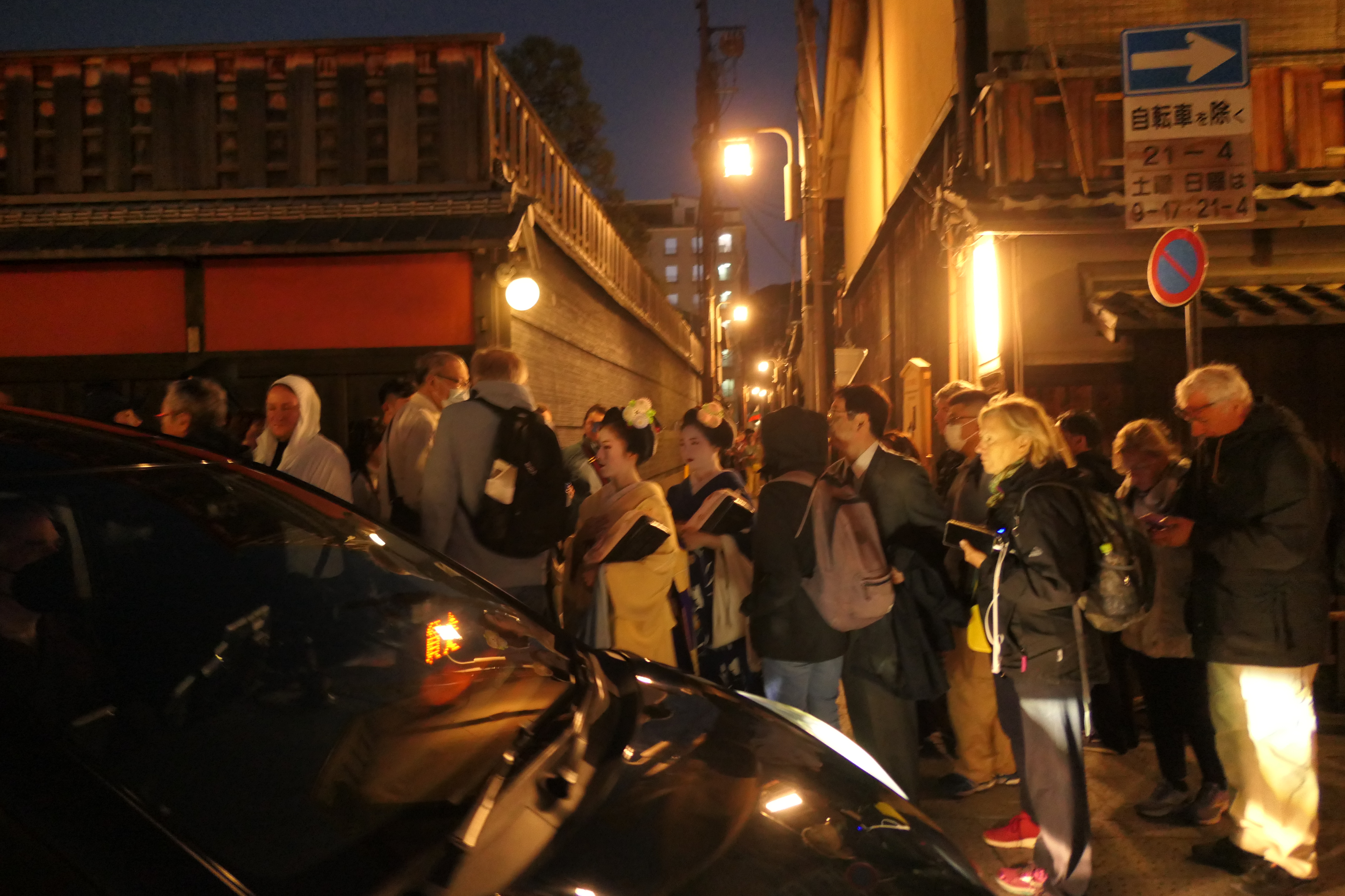 게이샤가 나타나면 사람들이 모여들었다.