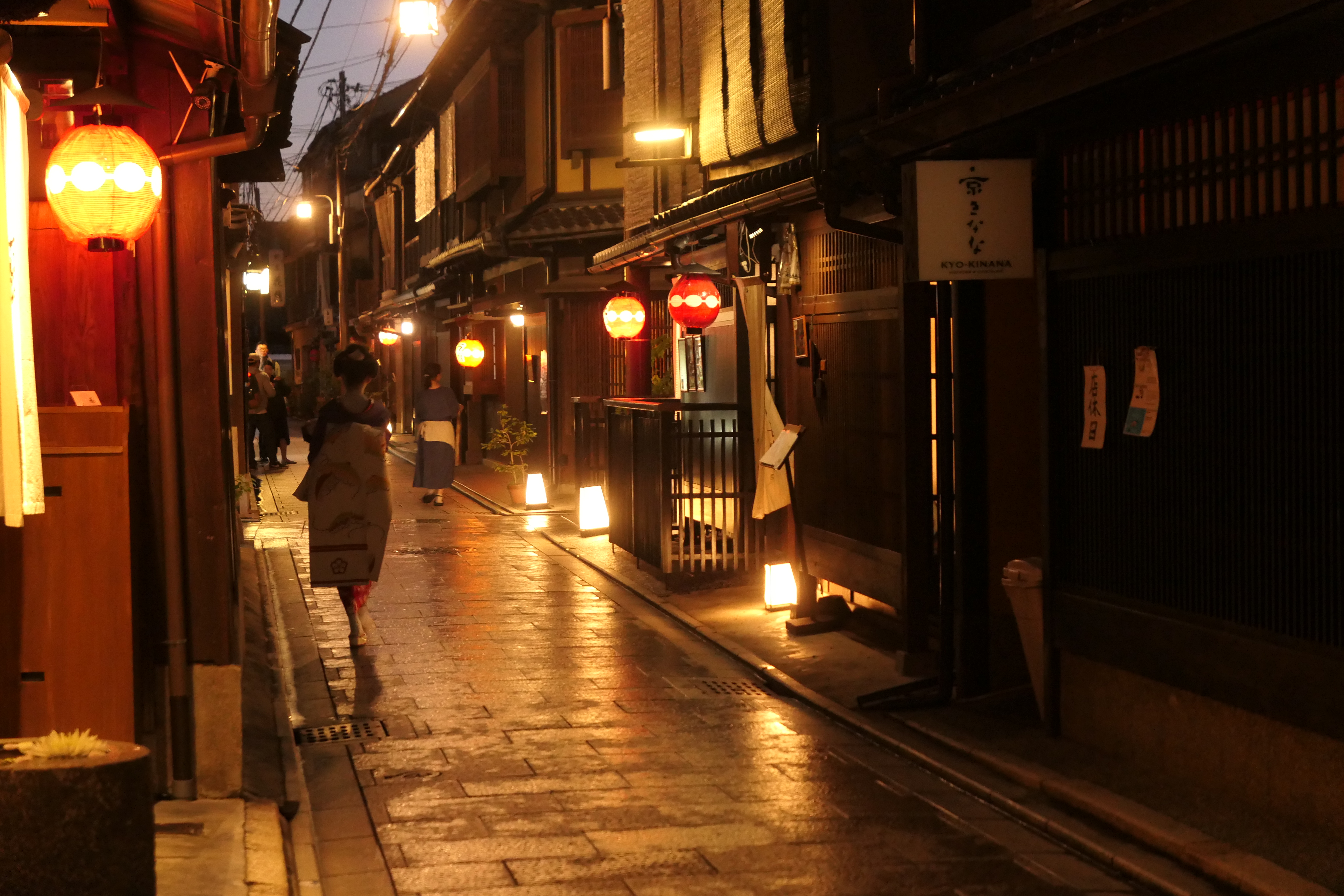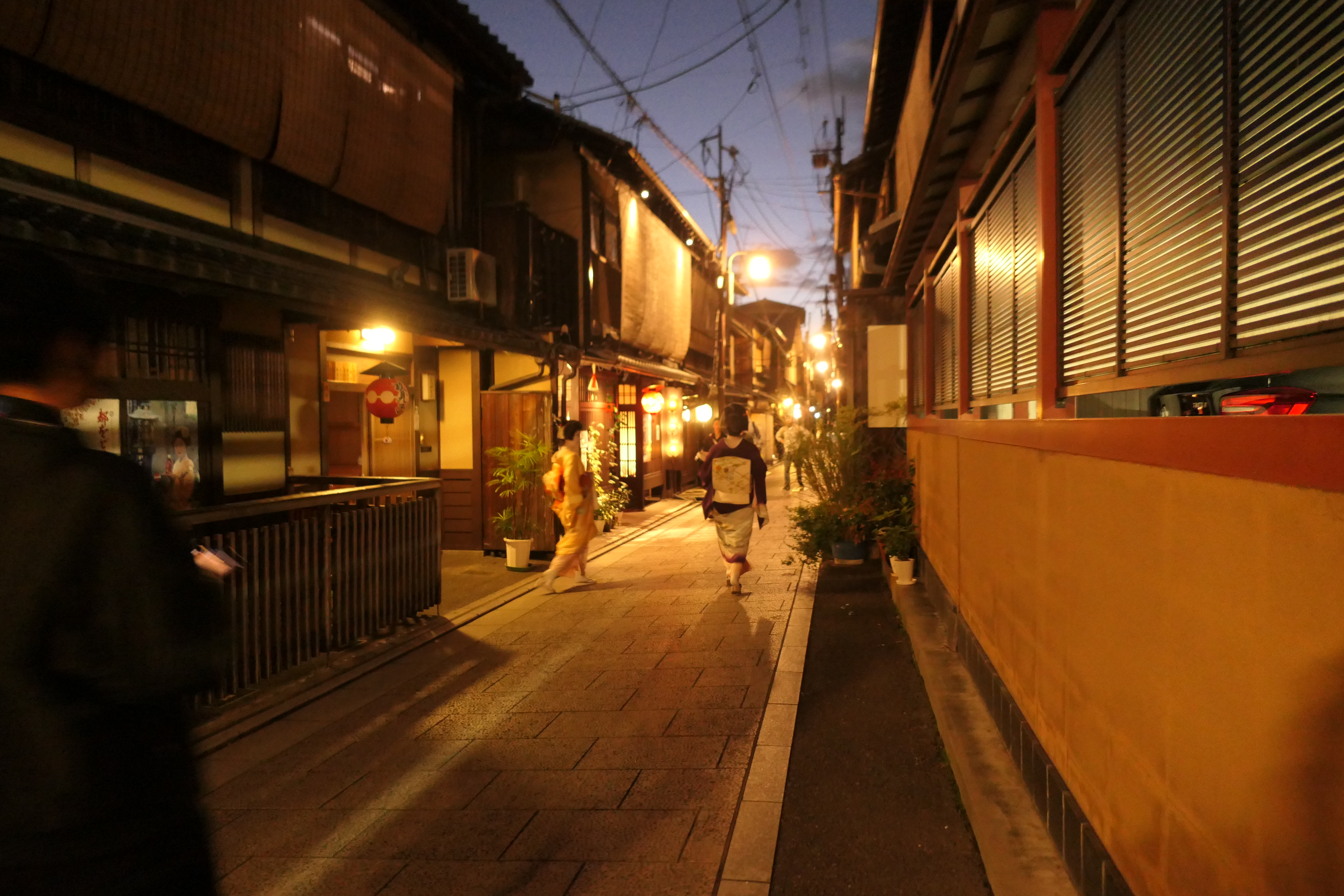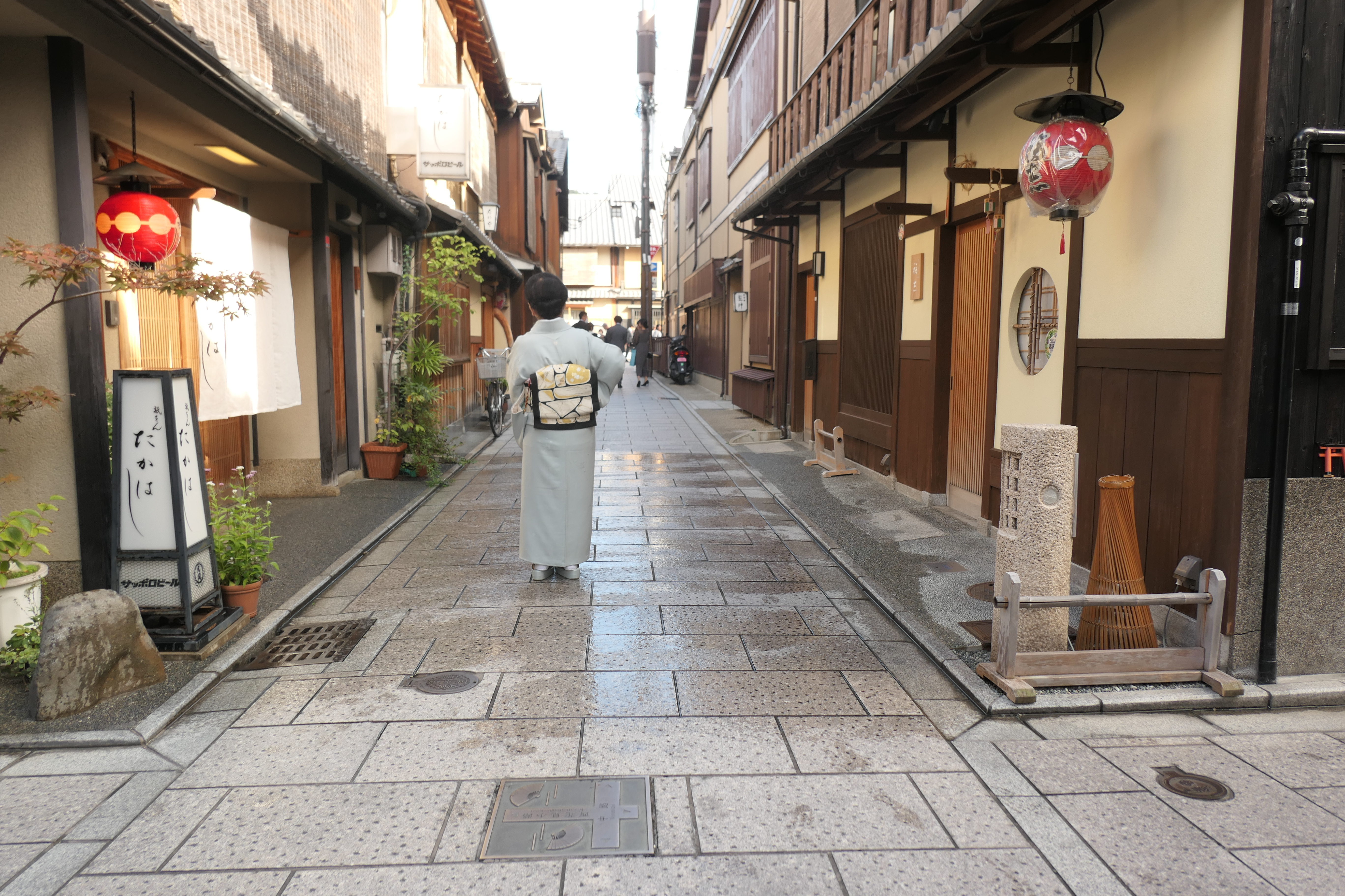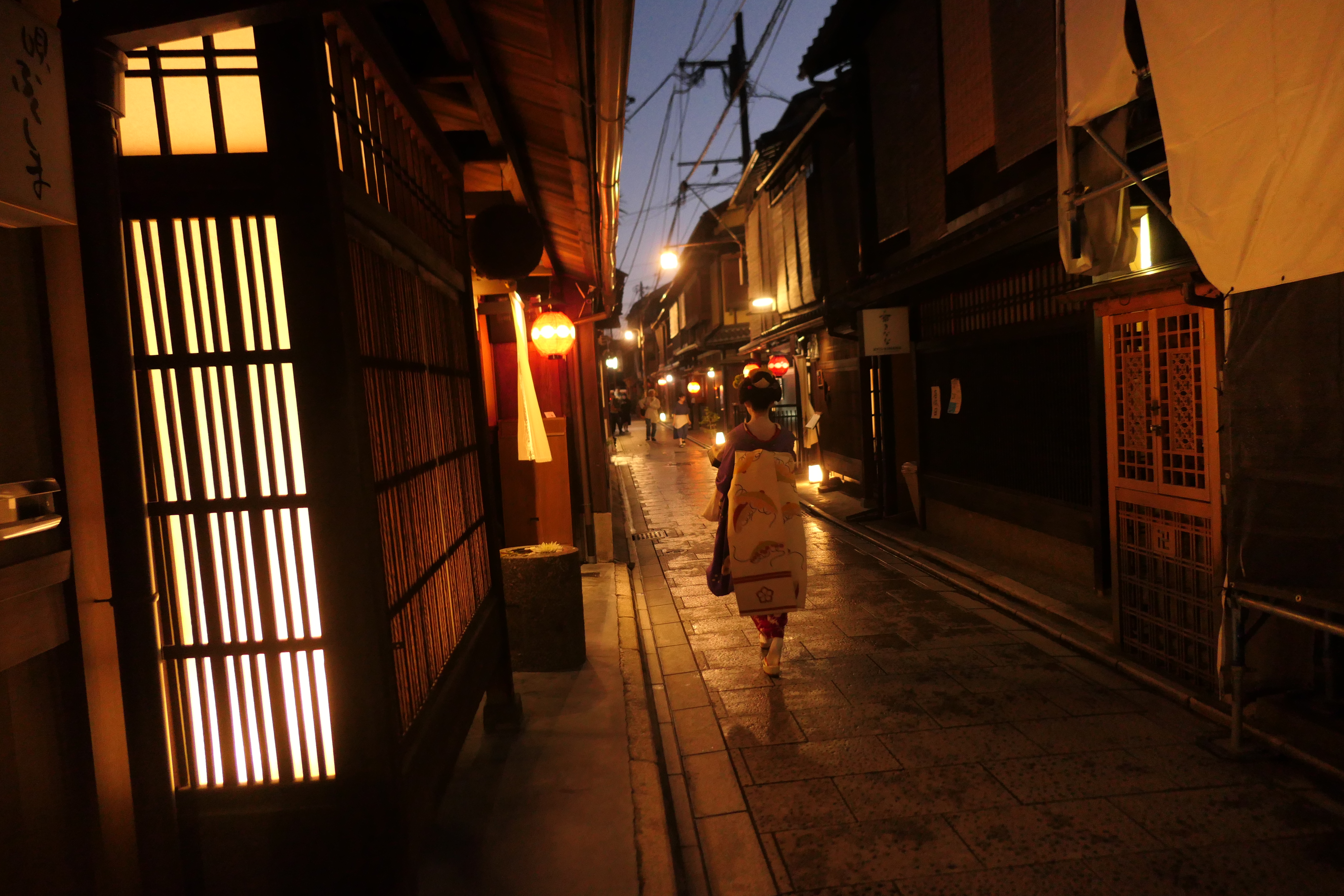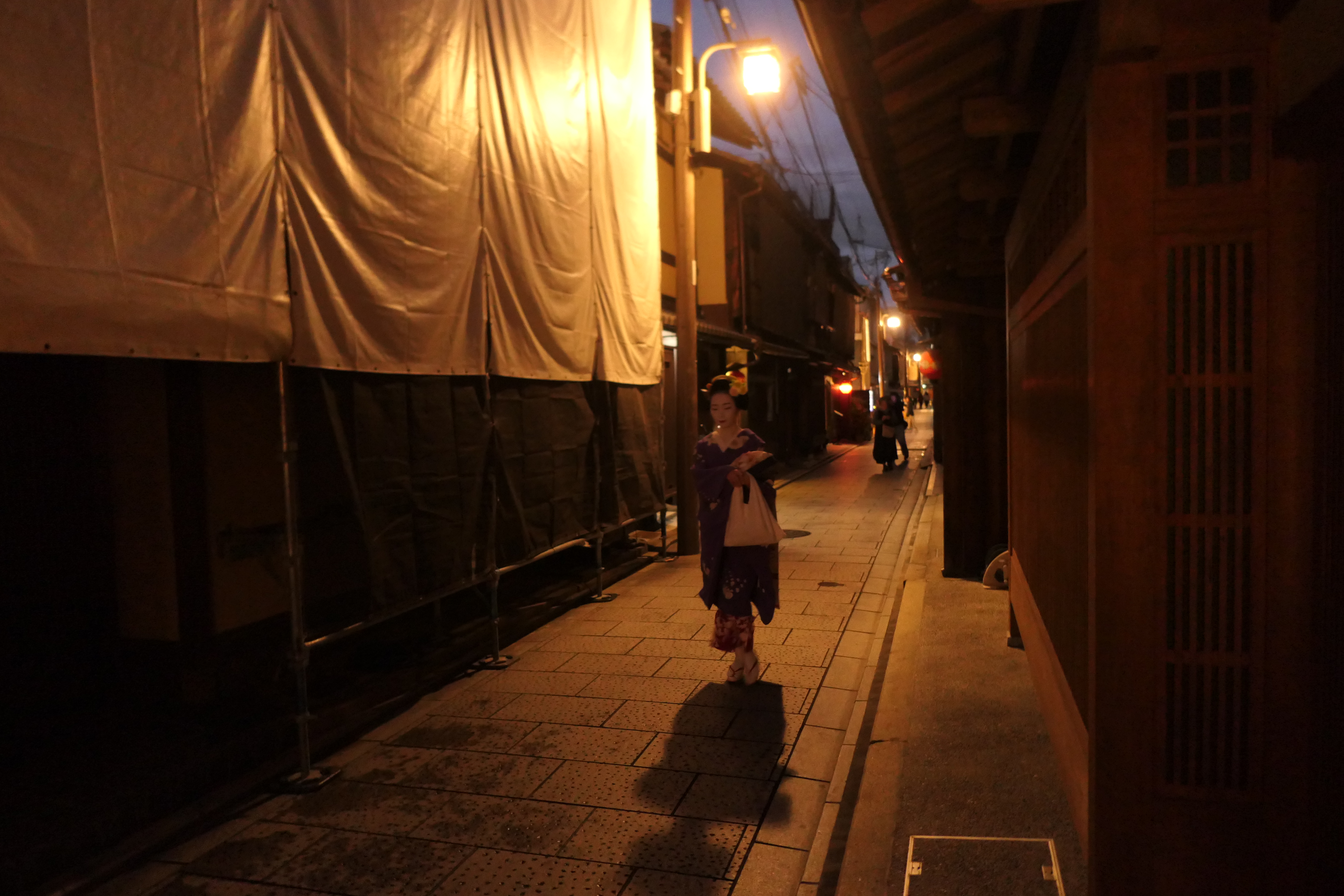 예상치 못하게 골목에서 하얗게 분칠한 게이샤를 만나면 깜짝 놀라게 된다.