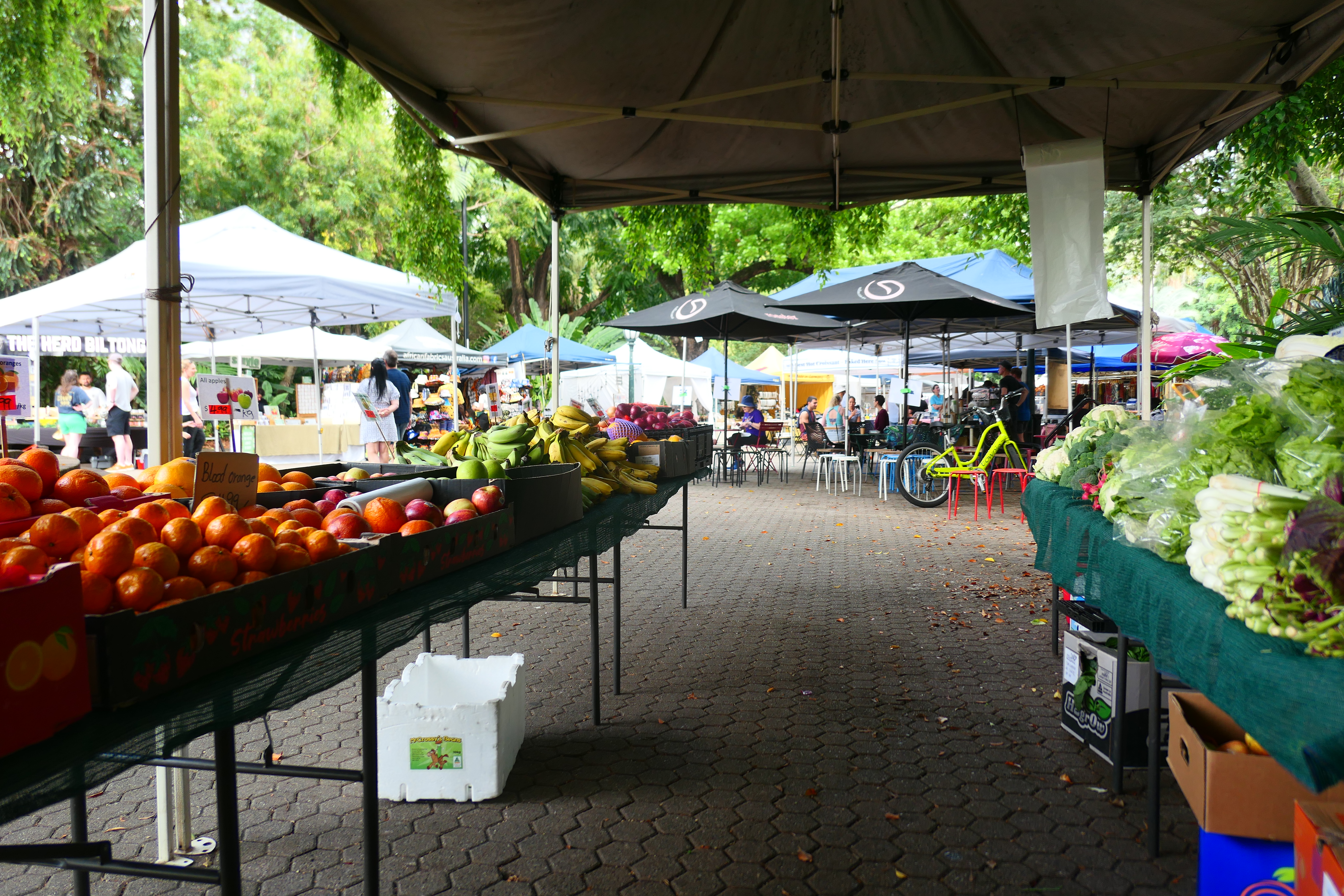 창밖을 내다보니 공원에 주말 장이 섰다.