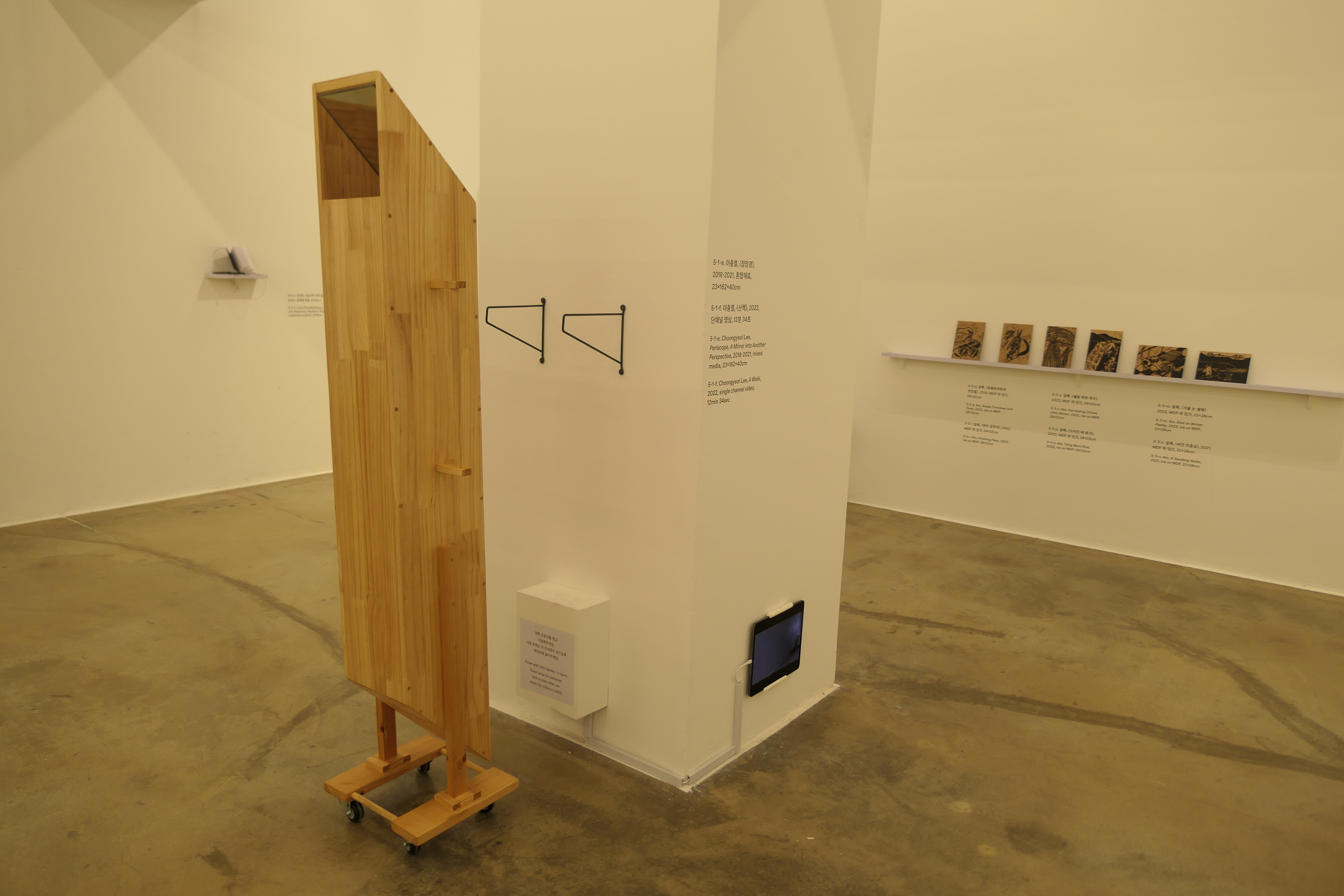 잠만경처럼 아래 위에 거울이 붙어 있어서 서서 이 통을 들여다보며 밀고 다니면 개의 시선으로 주변을 보며 걷는 셈이다. 개가 아래를 보며 걷는다면 개는 인간의 시선으로 보는 셈이 될 것이다.