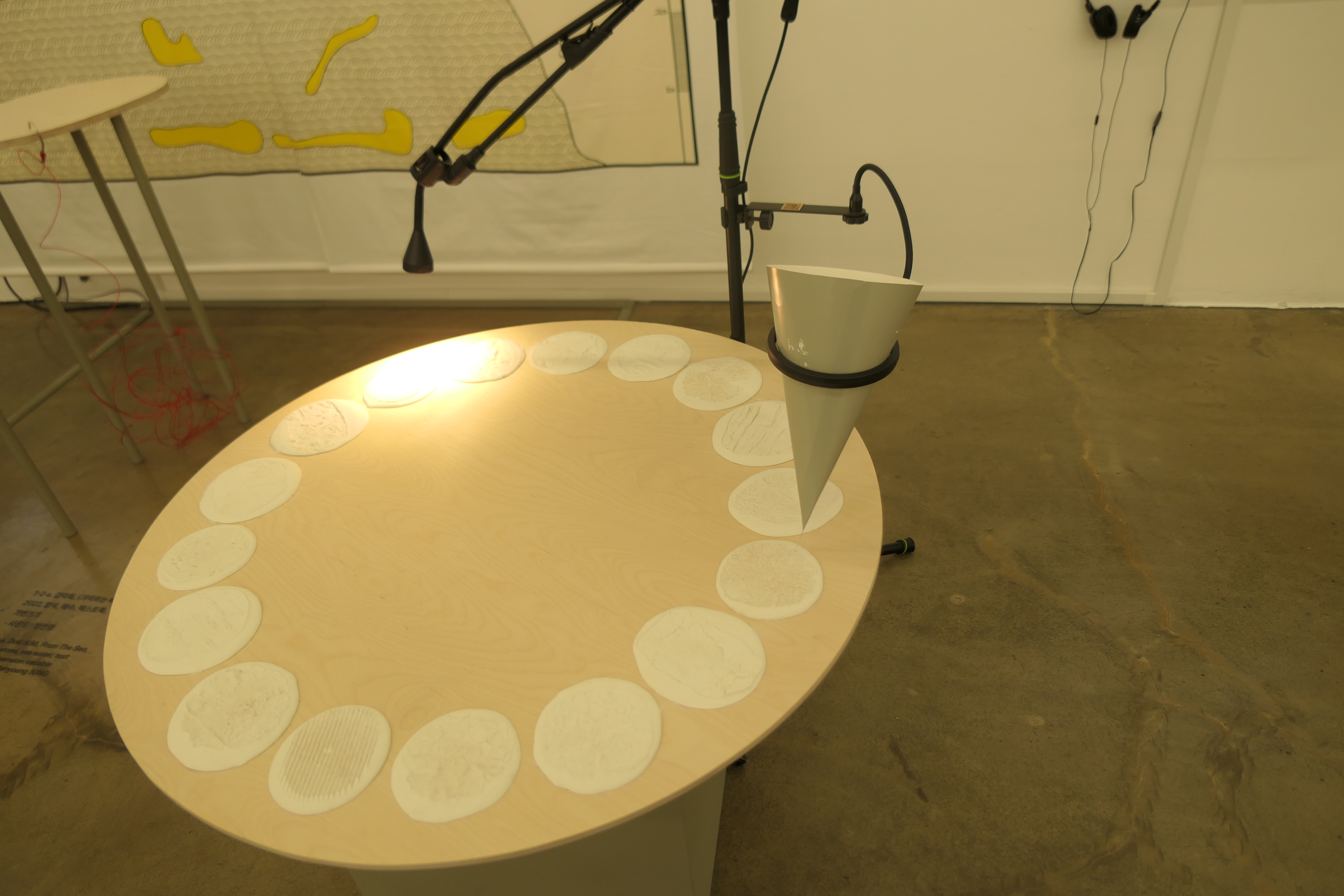 깔때기 모양의 끝에 가는 철사가 오톨도톨한 석고 위를 지나가며 소리를 낸다. 날카롭지만 그리 자극적이지는 않은 소리.