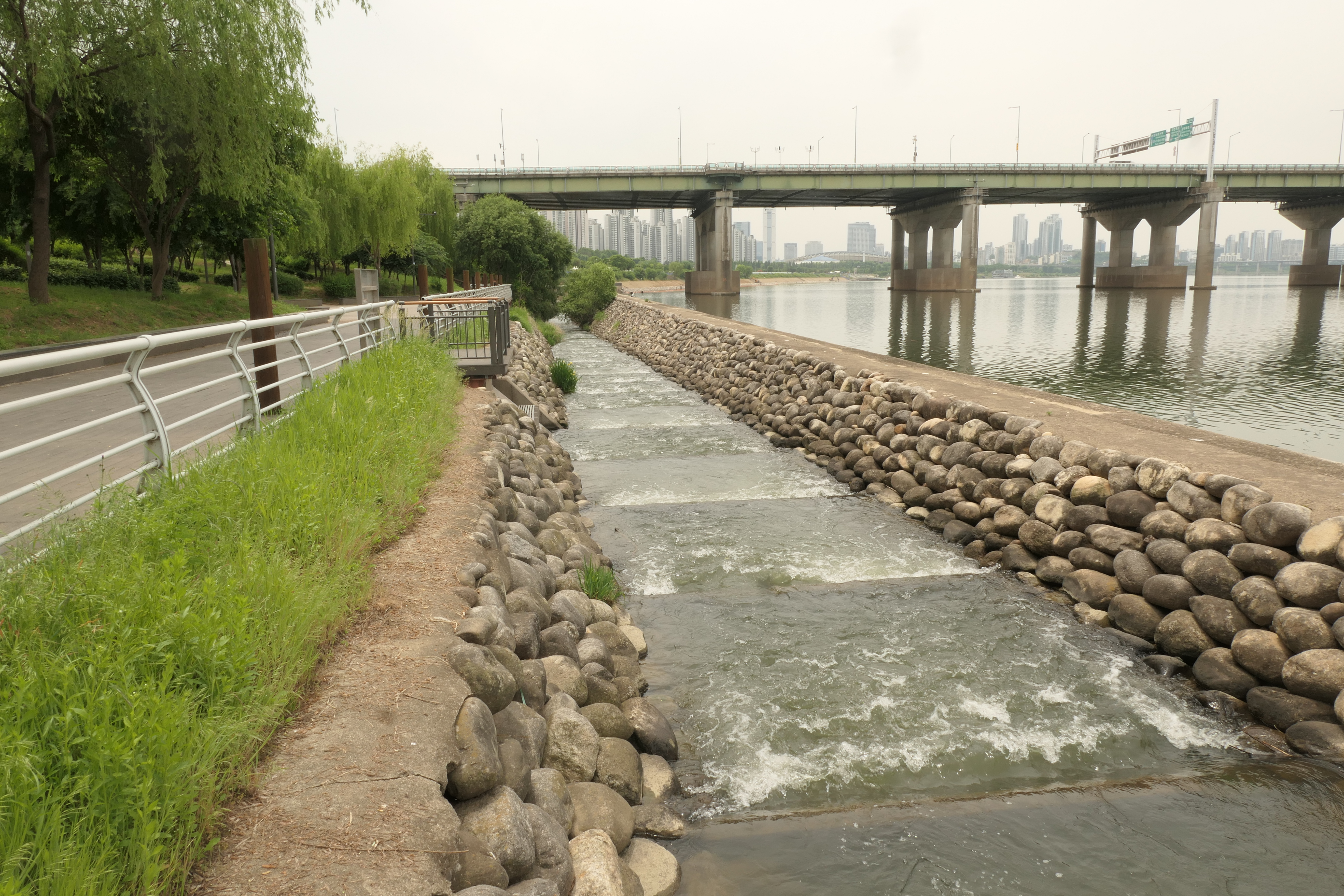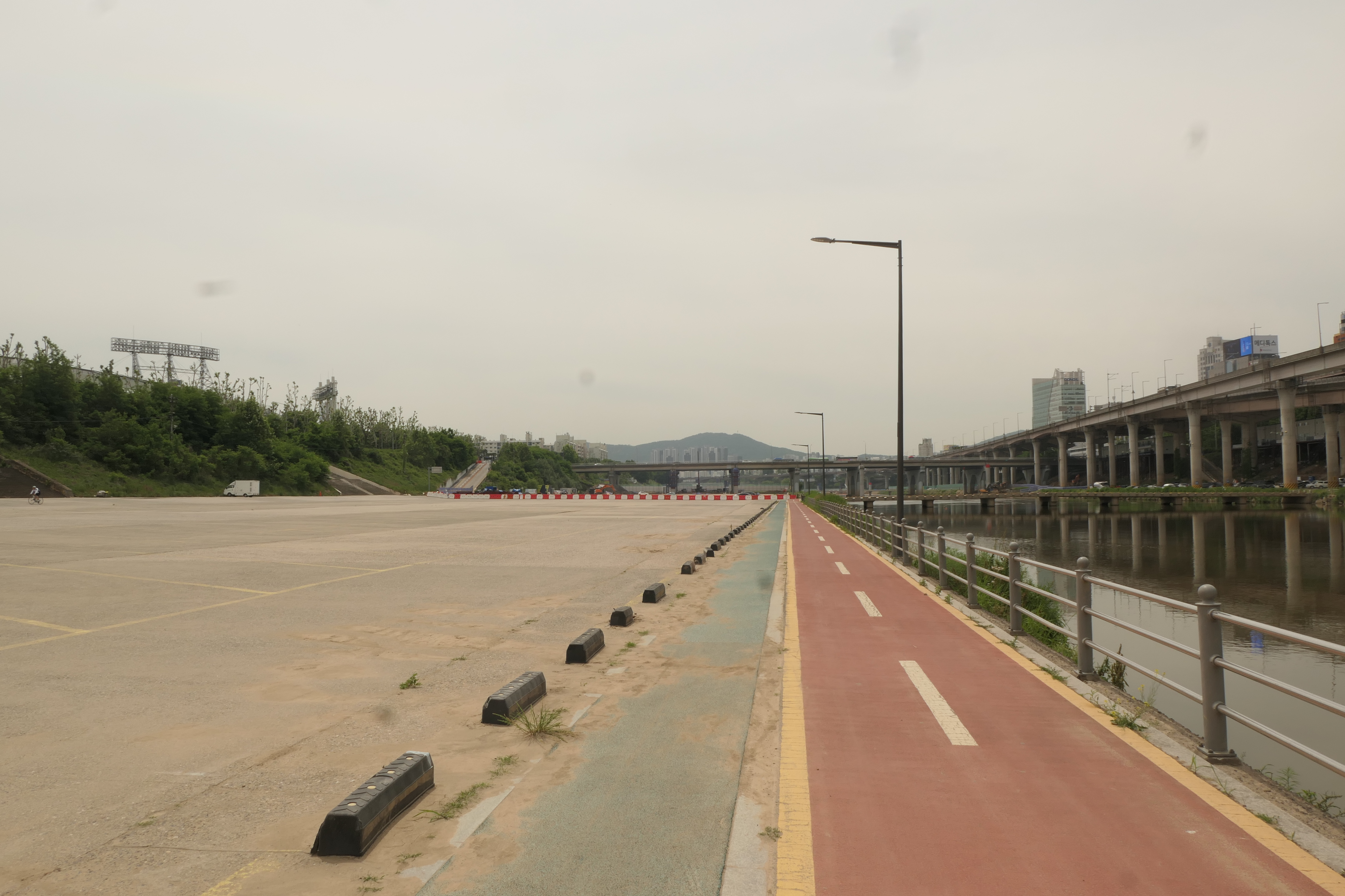 잠실 경기장이 보이는 곳에서 다시 천변으로 내려섰다.