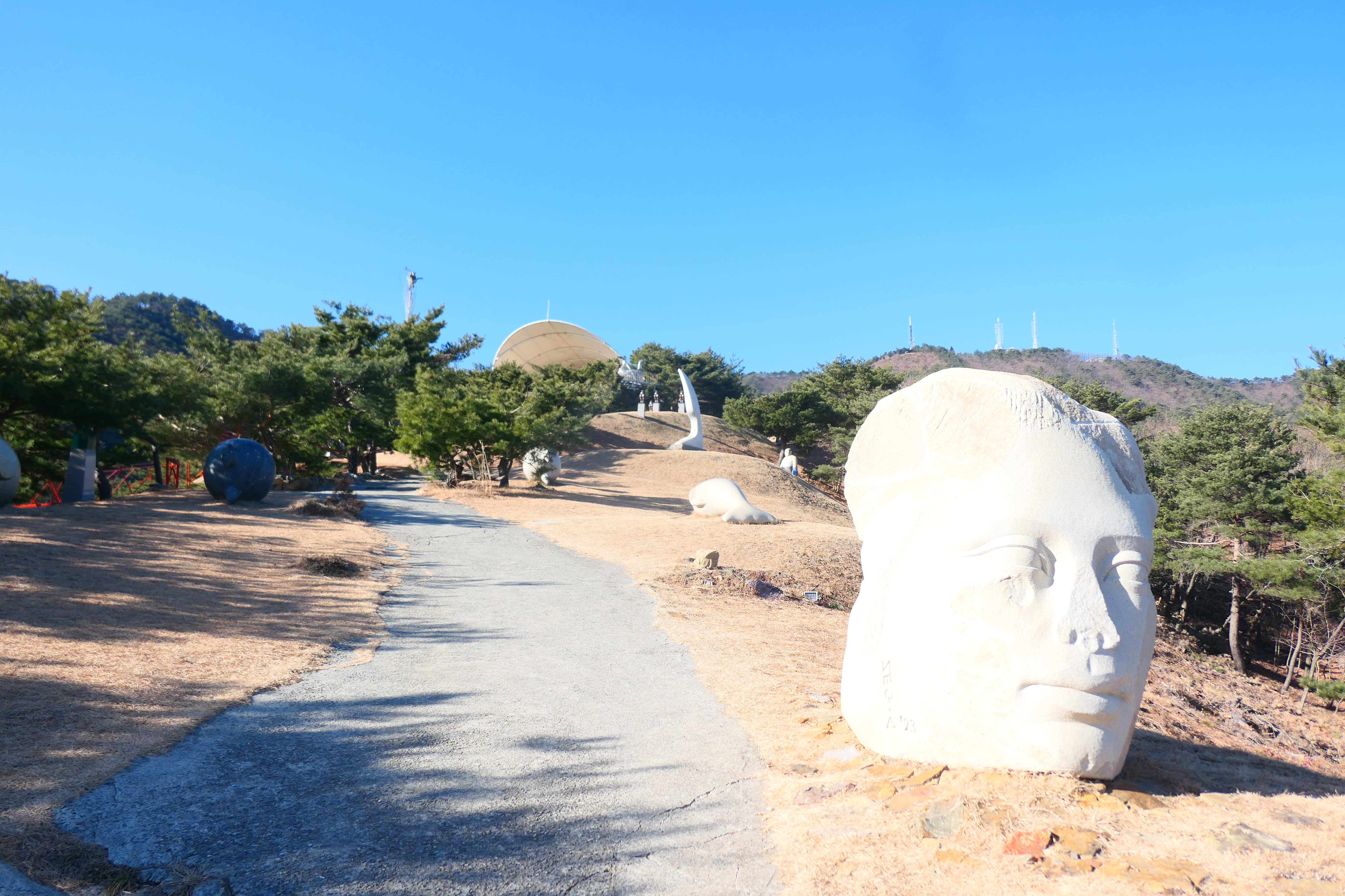 바다를 향해 둥근 원형의 배경이 있는 이곳이 가장 사람들이 많이 몰리는 장소다.